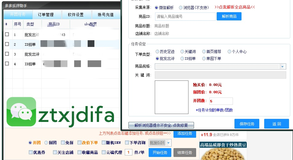多多做評價的助手是一個為個人電商運營者創(chuàng)建的電商工具,成立于2008年6月10日并上線投入運營。它的主要功能是作為一個補單平臺,專注于為電商商家提供試用單服務(wù),并且可以靈活地應(yīng)用于拼多多電商平臺。 多多上評助手提供了多種功能,包括但不限于可單買、可拼團、可開團,支持收藏、關(guān)注、**優(yōu)惠券下單,支持指定SKU、隨機SKU,以及通過ID、搜索、多多進寶、拼多多批發(fā)等多種拍單方式。此外,它還支持默認(rèn)五星評價、帶圖帶文**以及追評功能。軟件還配備了自動收貨地址系統(tǒng),用戶也可以自行導(dǎo)入收貨地址。 多多評價工具由獨立技術(shù)團隊開發(fā),是一個以軟件為核心載體的自動化刷單程序,旨在為用戶提供方便、快捷、安全、穩(wěn)定、可靠的自動補單方案,幫助微小、中型商家快速將想法轉(zhuǎn)化為運營收益,解放雙手,自動化完成開團補單操作,vx;ztxjdifa |
