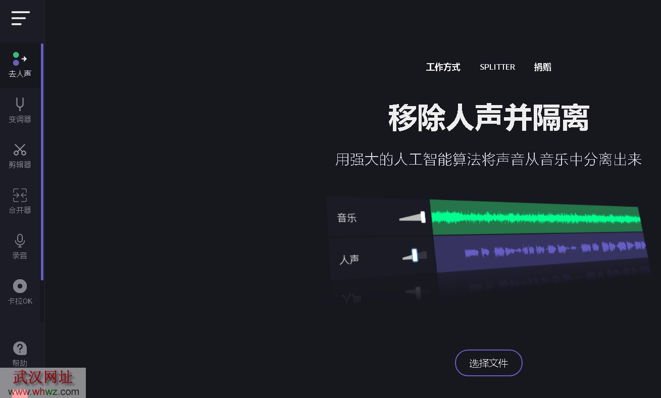 用強(qiáng)大的人工智能算法將歌曲中的聲音與音樂分開,多語(yǔ)言,可以選擇中文