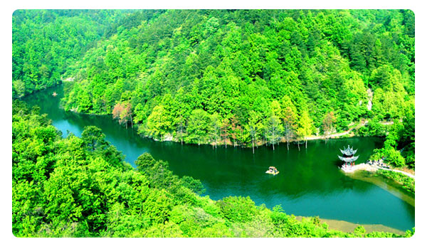 清涼寨景區(qū)因與城市海拔溫差,天生一個清涼世界,夏季氣溫通常比武漢城區(qū)低8-10℃,一直是喧囂城市的一方凈土和避暑休閑的“夏宮”。當“紛紛紅 紫已成塵,布谷聲中夏令新”,層層熱浪推向繁華鬧市之時,木蘭清涼寨旅游度假區(qū),仍是一派青山滴翠,蜂飛蝶舞,水媚風柔的春天景象。通天湖、百花湖、碧波 如鏡,茗泉池、清涼池天水一色,宛如一串耀眼的明珠,鑲嵌在花團錦簇的畫廊之中。